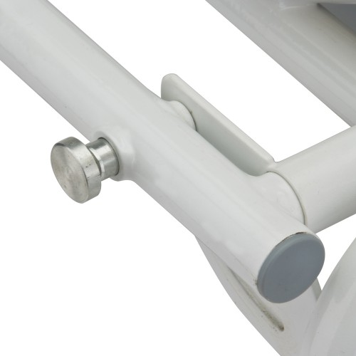 Высота кресла-туалета регулируется семиуровневым кнопочным фиксатором через каждые 25 мм.