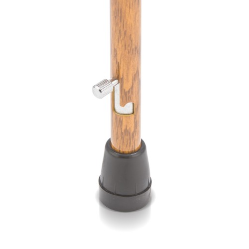 Высота трости регулируется надежным кнопочным фиксатором.